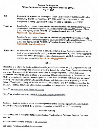 The purpose of this page is to provide a central hub to post public information in regards to the Continuum of Care projects we are working to bring to fruition.